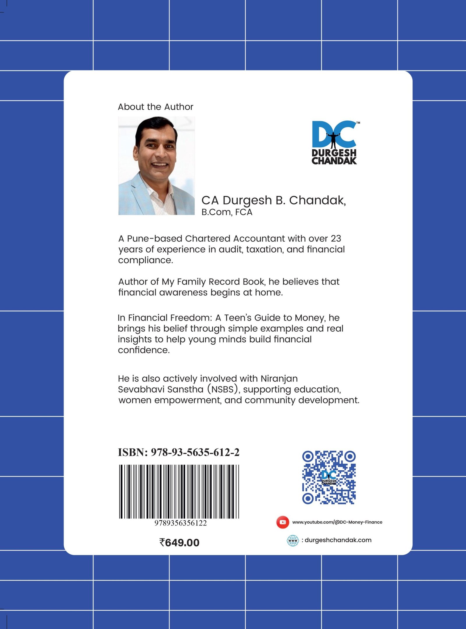 He is also actively involved with Niranjan Sevabhavi Sanstha (NSBS), supporting education, women empowerment, and community development.